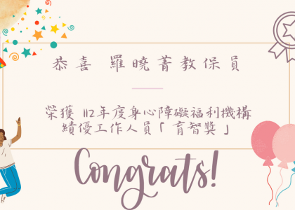 恭喜本院羅曉菁教保員榮獲育智獎!