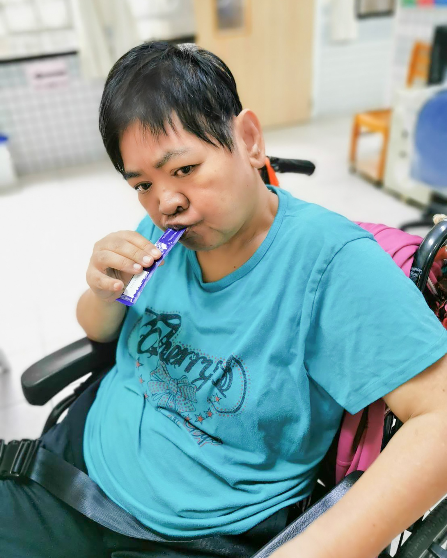 院內的社工也幫阿花申請了「 原住民族委員會 」的補助,並用補助經費購買了阿花所需的營養保健食品,希望能幫助阿花加速身體的恢復;這次我們還特別購買了「葉黃素果凍」,不僅可以補充葉黃素明亮眼睛,也讓喜歡甜食的阿花更有動力復健!
