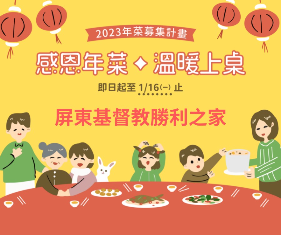 今年我們參與iGoods愛物資感恩年菜的募集,只到1/16止,邀請您可以自己認捐,也可以幫親友認捐,或是號召大家一起來認捐年菜,一同為屏東基督教勝利之家的院生送上最溫暖的祝福。