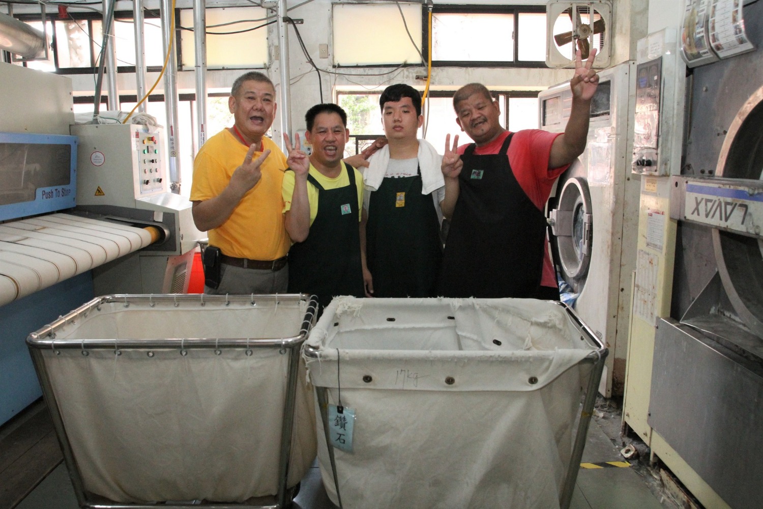 勝利洗衣庇護工場今年邁向第15年,技術指導林信榮,是創始員工之一。說他最資深也不為過,因為更早之前,他在勝利之家的洗衣部門服務。