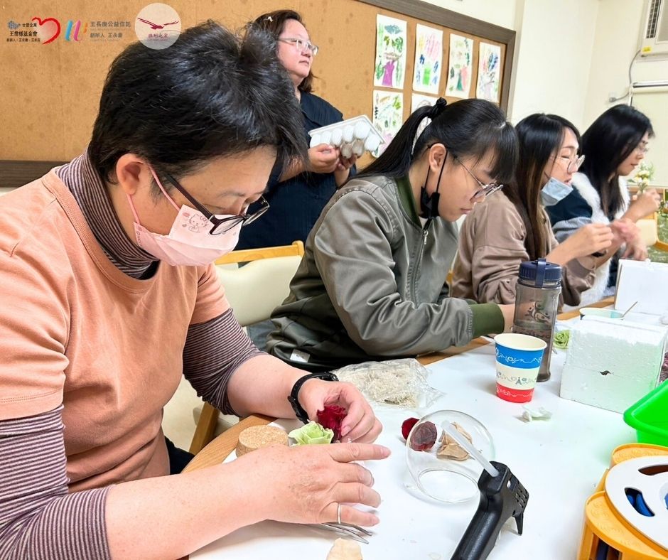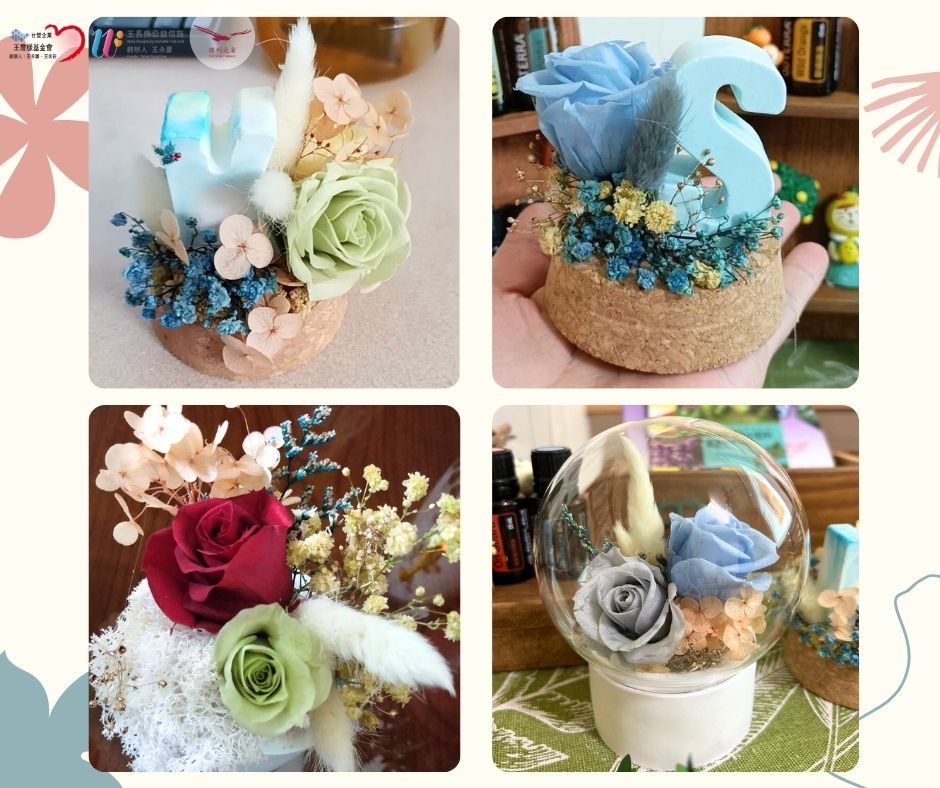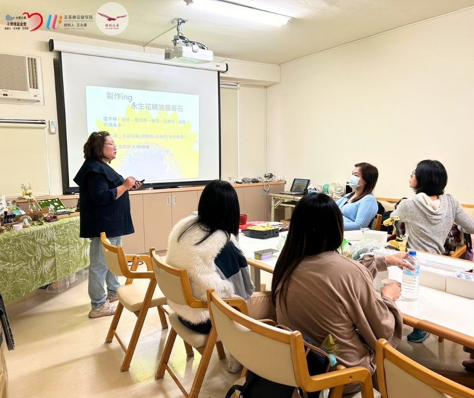 Q婷老師以紓壓團體為主軸,成功地結合了擴香石和精油及永生花材
