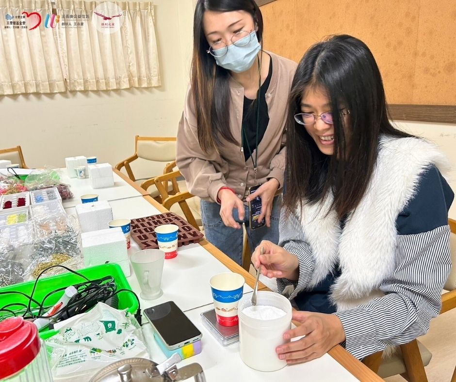 在台前,老師以其專業的知識和熱情,教導我們如何創作屬於自己的療癒工藝品。Q婷老師也將這份熱忱感染給了我們,使我們沉浸於精油的世界中…