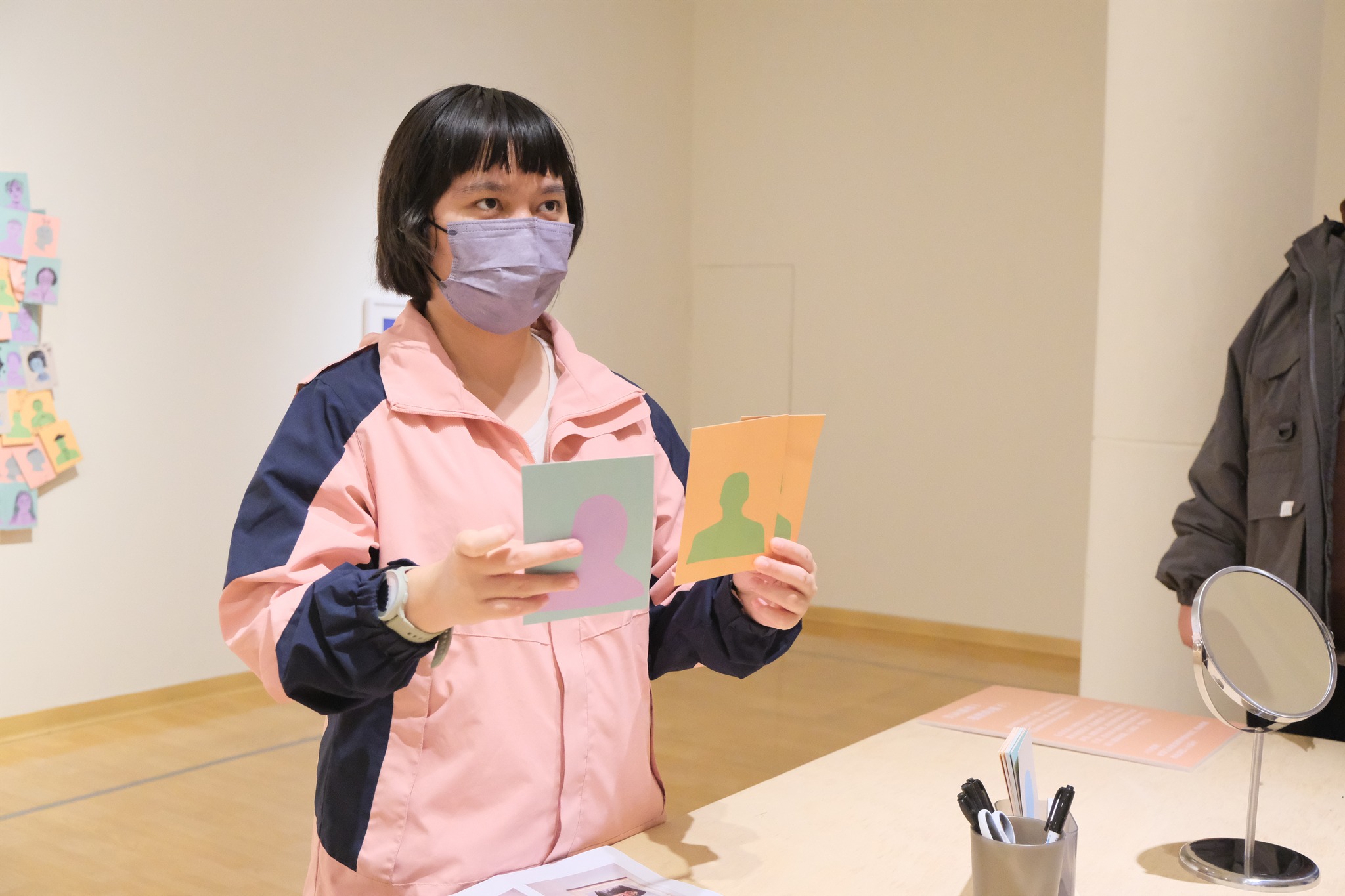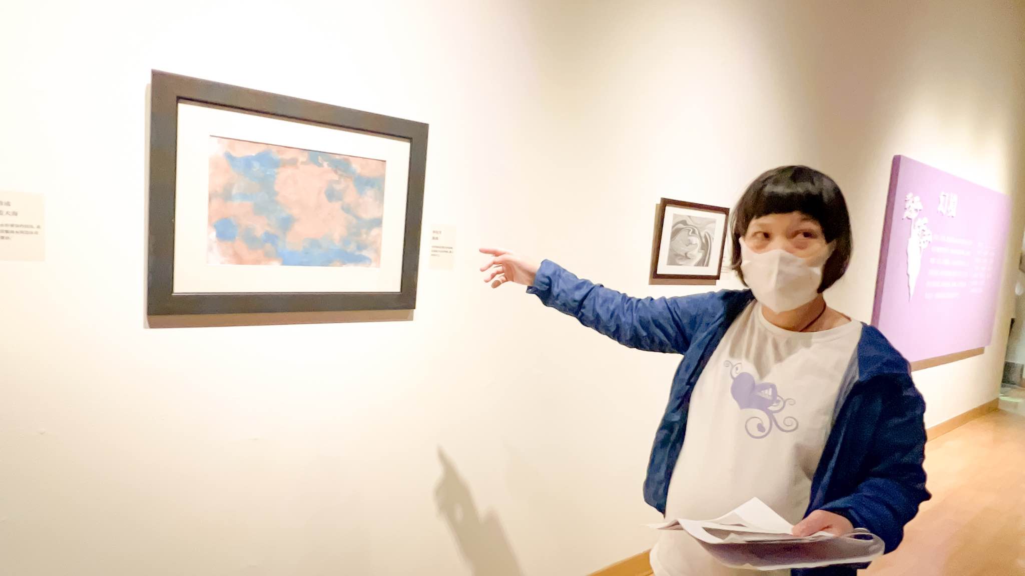 然而,要成為一位合格的導覽員,是需要經過一番培訓的。為了讓院生們更有臨場感,老師將教室空間模擬成展場,讓院生們可以練習走位以及在展間裡需要注意的事項。終於在不斷的練習下,我們四位報名參加導覽員培訓的院生通過了考試,正式成為本次展覽的導覽員之一。