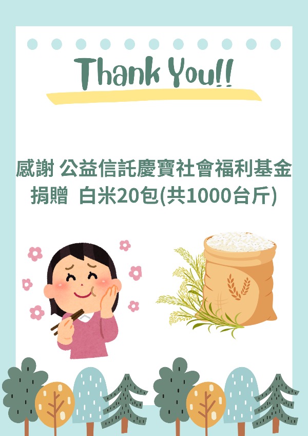 感謝 公益信託慶寶社會福利基金 捐贈白米20包 (共1000台斤)#慶寶公益信託及白米日用品捐贈