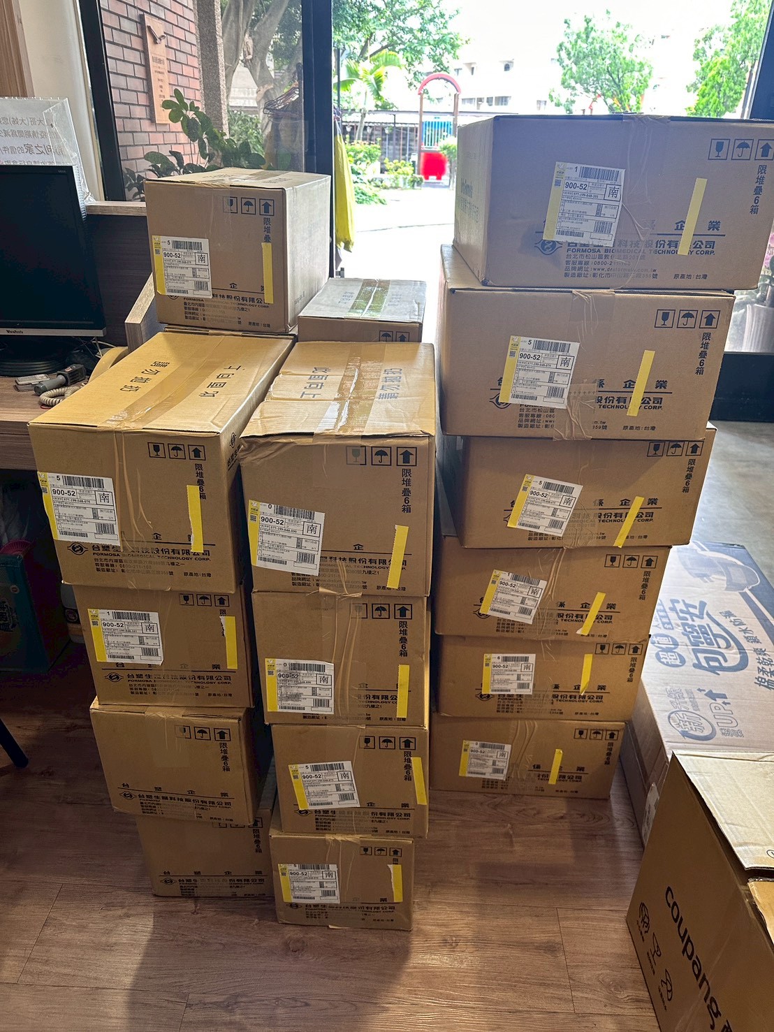 日用品:沐浴乳36瓶、洗髮精42瓶、洗衣粉72包、洗潔精48瓶