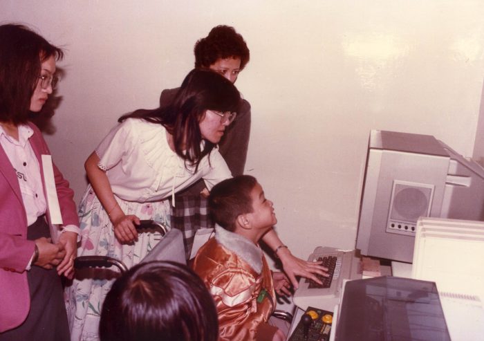 -對腦性麻痺的孩子來說,要握筆學寫字是非常困難的。當時擔任勝利之家主任的劉侃看見了這樣的情形,便和院內同工一同討論並著手設計出一套國語教學程式,且改裝了電腦的按鍵,讓腦性麻痺的孩子能夠更好的管道和外界溝通。