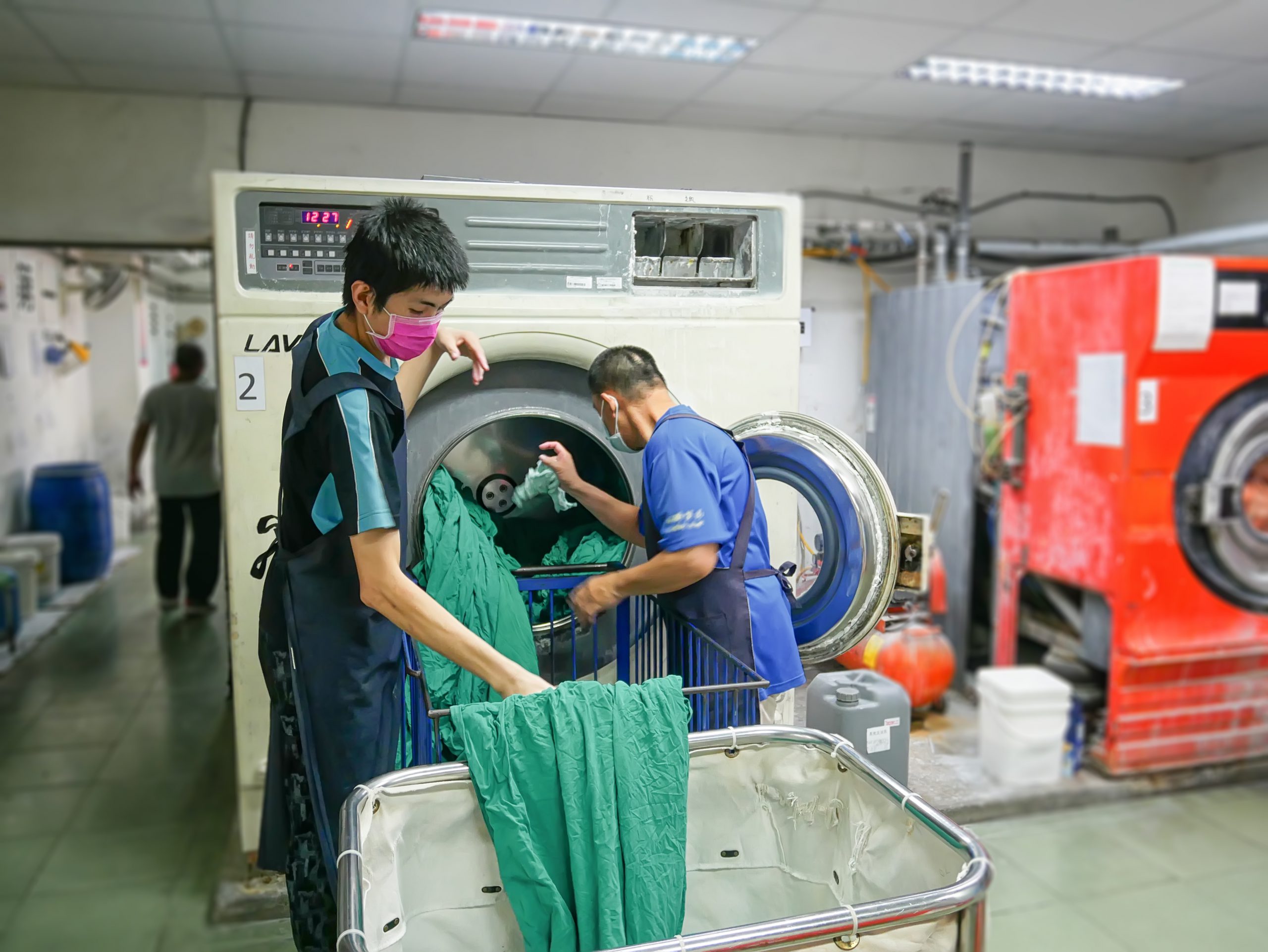 洗滌區:分類、刷洗、洗滌、大件輪燙、大件摺疊、烘衣。