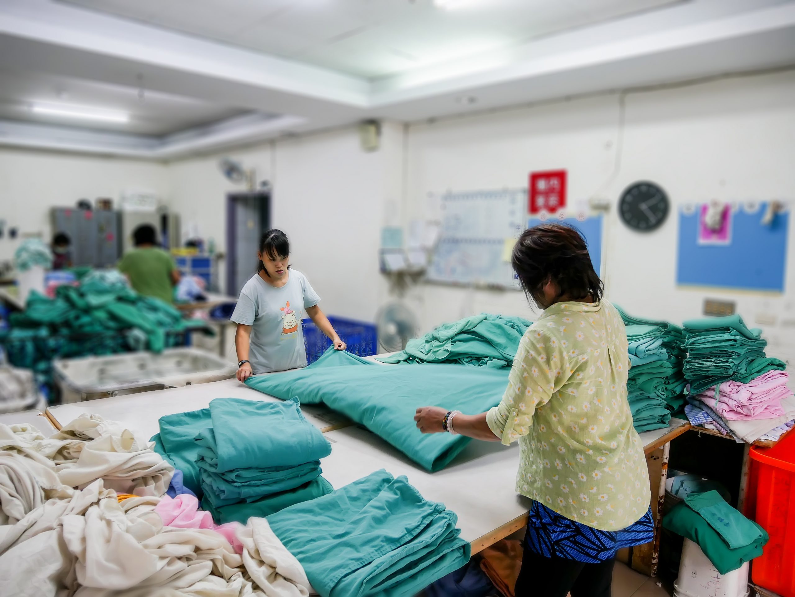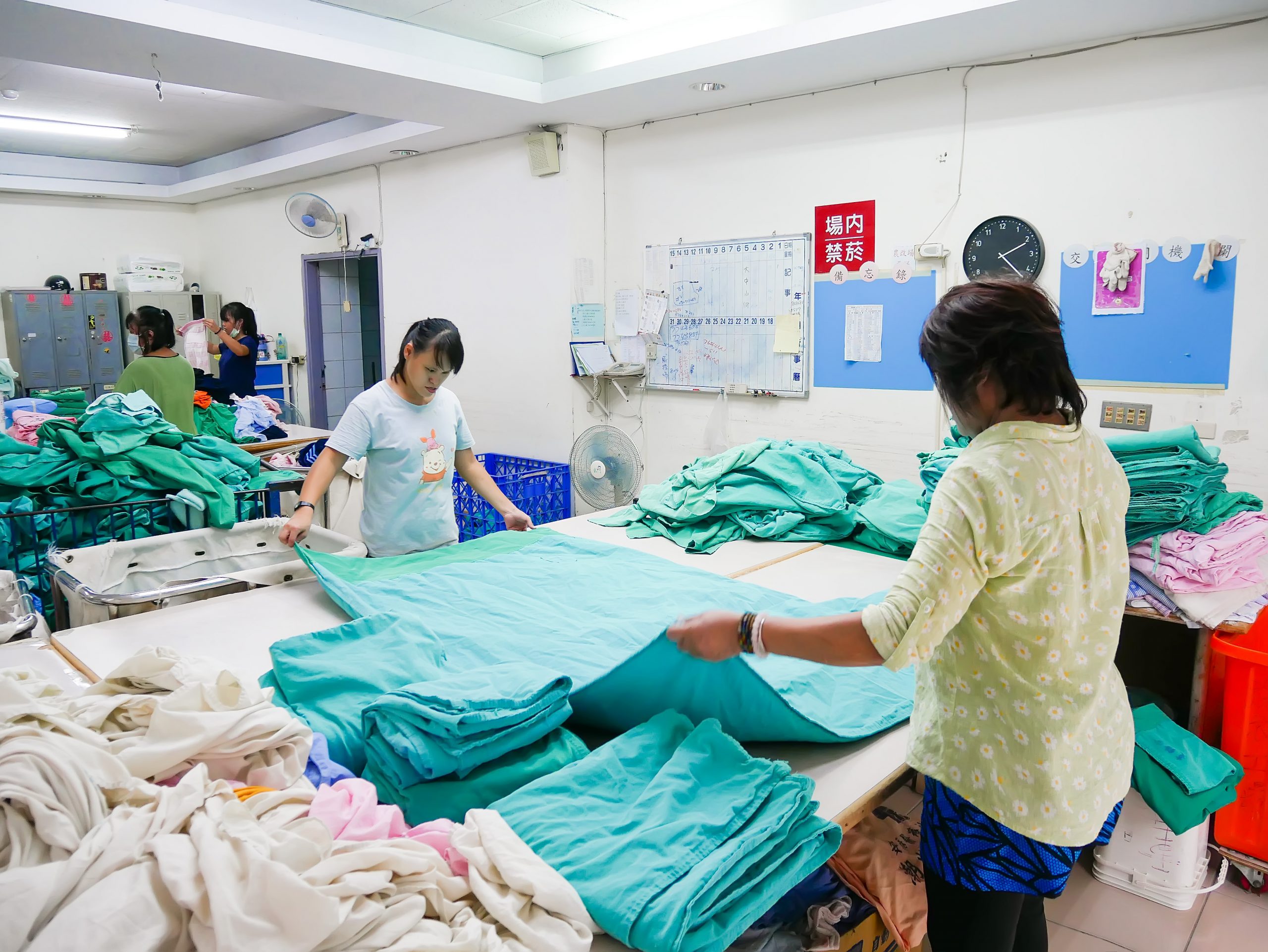摺的衣物布品,來自各大醫院、飯店、養護中心
