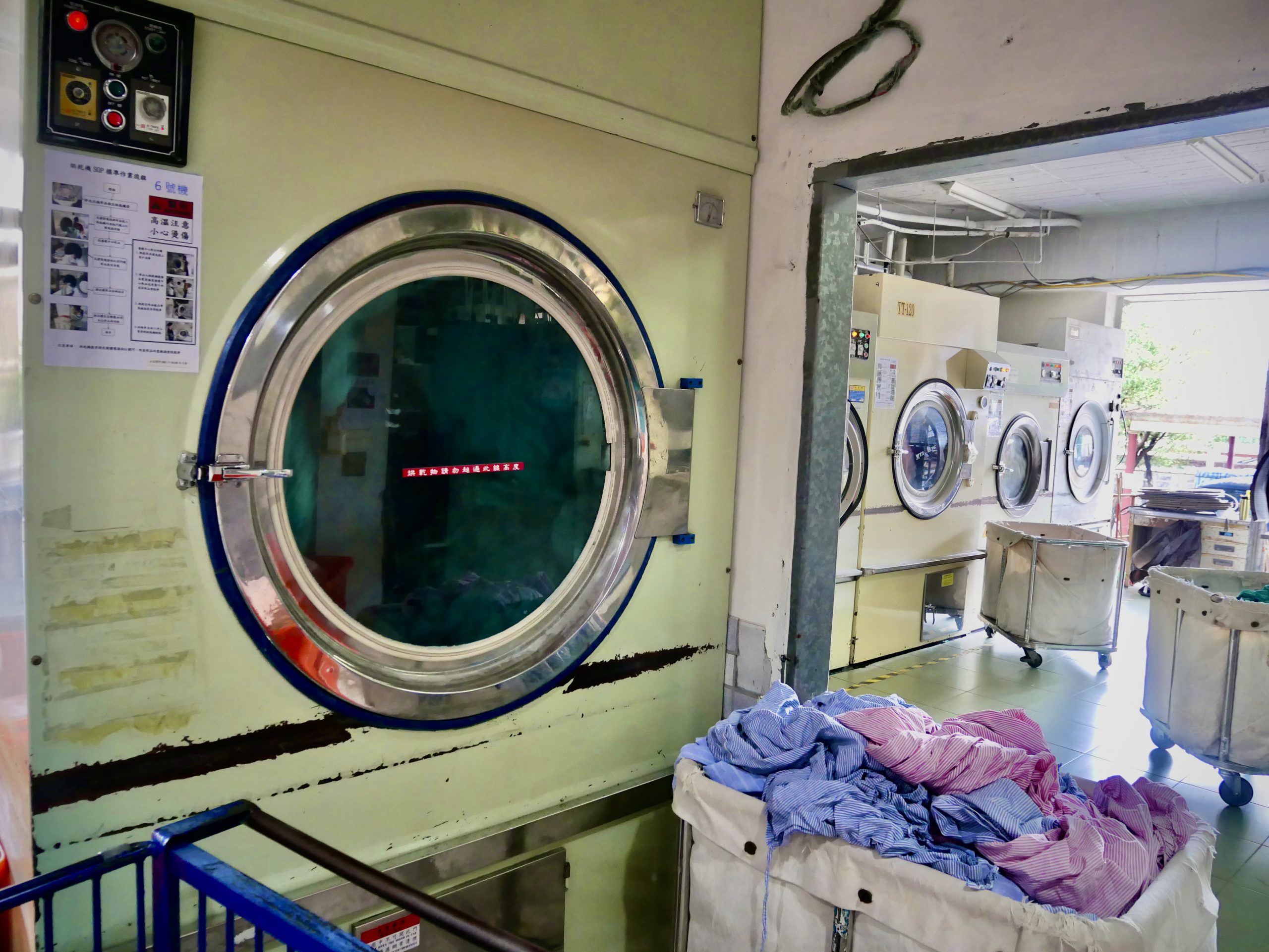 在熱烘烘又夾雜洗衣設備的聲響中,